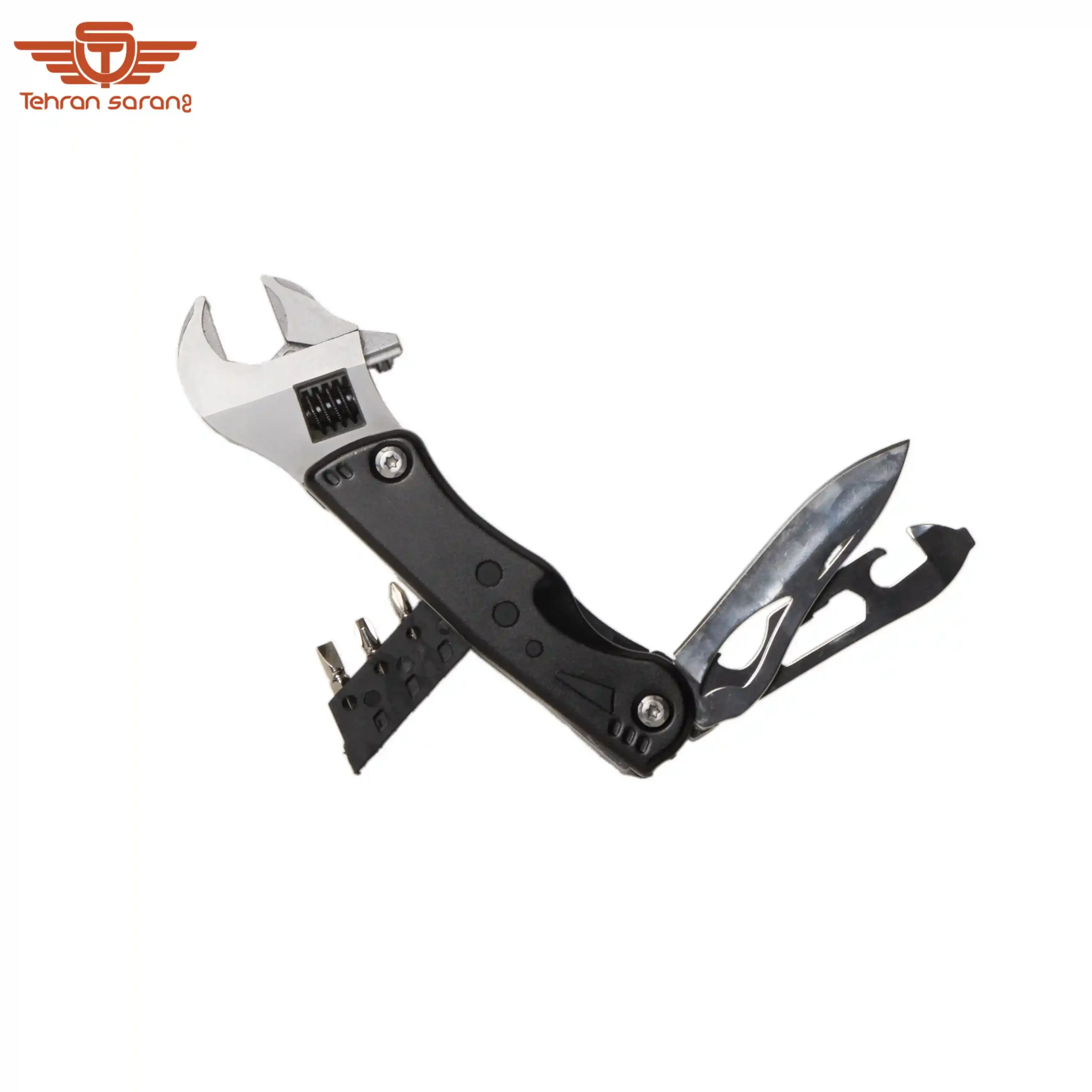 آچار فرانسه تاشو یک ابزار کاربردی و جمعوجور است که به راحتی در کیف، خودرو یا جعبه ابزار قرار میگیرد. طراحی تاشوی آن باعث میشود فضای کمی اشغال کند و حمل آن بسیار آسان باشد. این محصول علاوه بر آچار، دارای مجموعهای از انواع ابزار آلات مورد نیاز برای کارهای روزمره و فنی است.