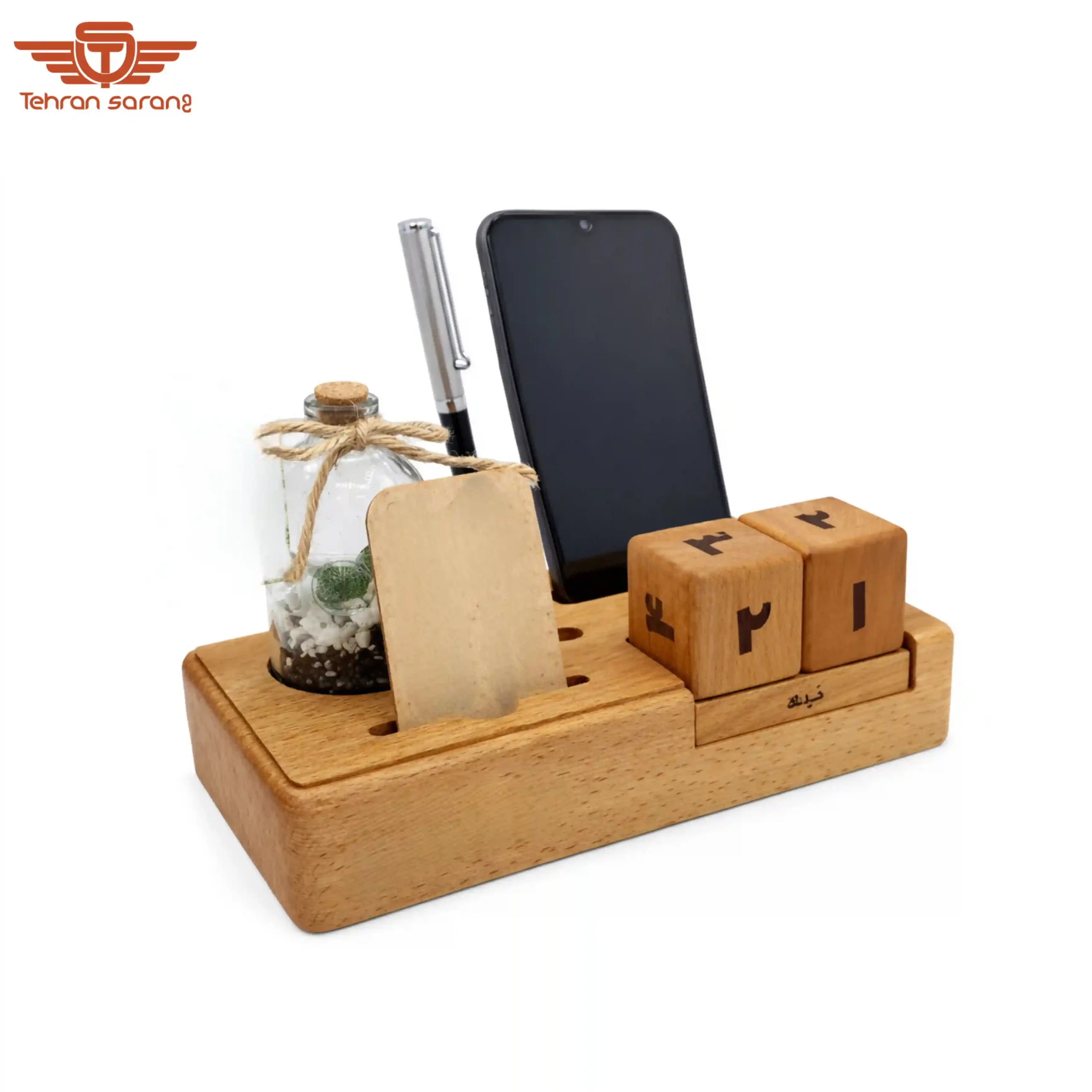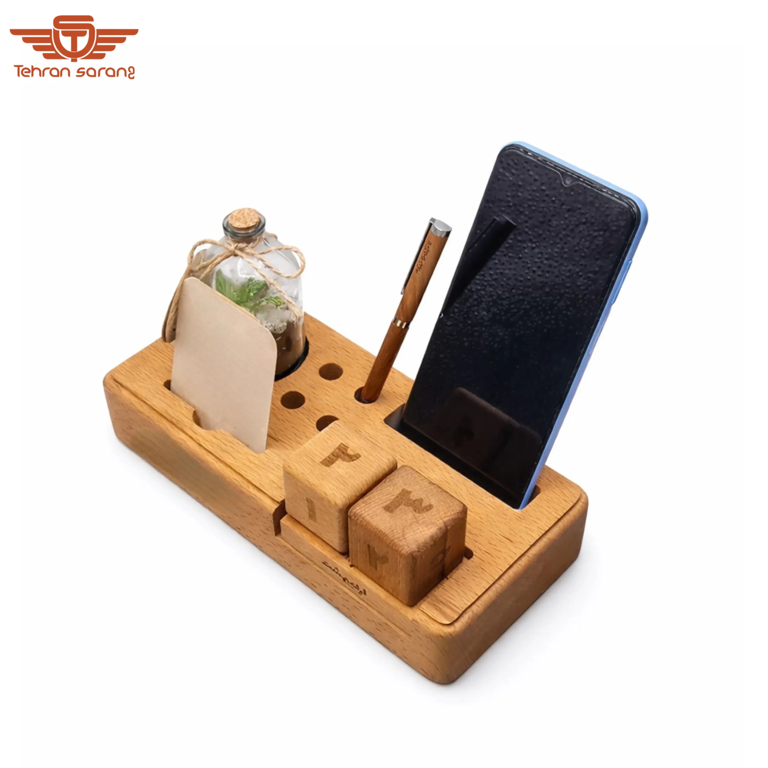 این ست استند رومیزی چوبی ساخته‌شده از چوب راش، راهکاری ساده و کاربردی برای نظم‌دهی میز کار است که با وجود تقویم پایدار، استند موبایل و استند قلم، نیازهای روزمره را در یک مجموعه منسجم برطرف می‌کند. بافت طبیعی چوب، حس گرما و اصالت را به فضای کاری اضافه کرده و طراحی مینیمال آن، با انواع دکوراسیون اداری و خانگی هماهنگ می‌شود. بسته‌بندی کرافت، هویت طبیعی و دوستدار محیط زیست این محصول را تکمیل کرده و آن را به انتخابی مناسب برای هدیه تبلیغاتی ماندگار تبدیل می‌کند.