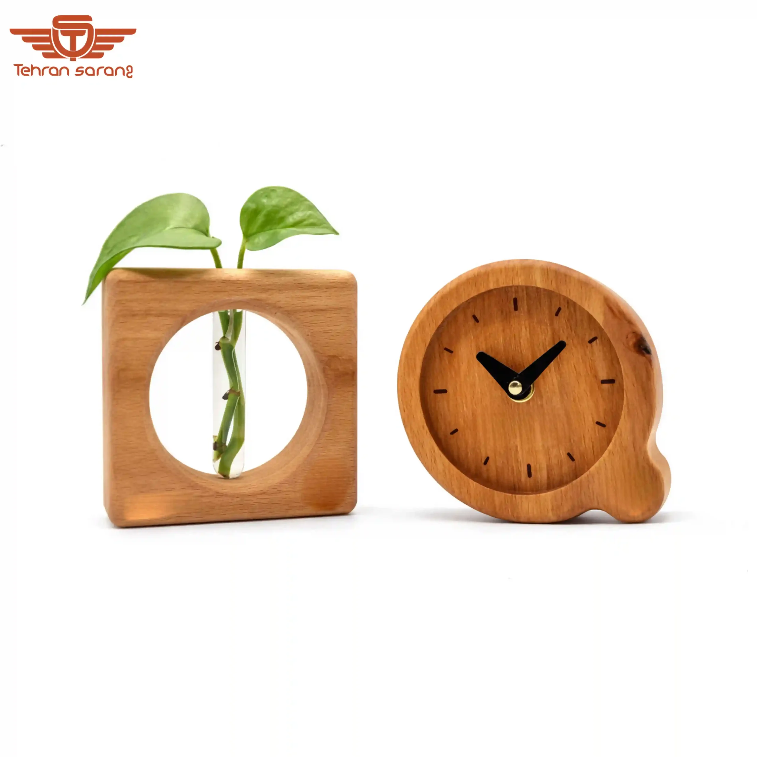 • ساعت چوبی هماهنگ با متریال ست برای ایجاد هارمونی بصری