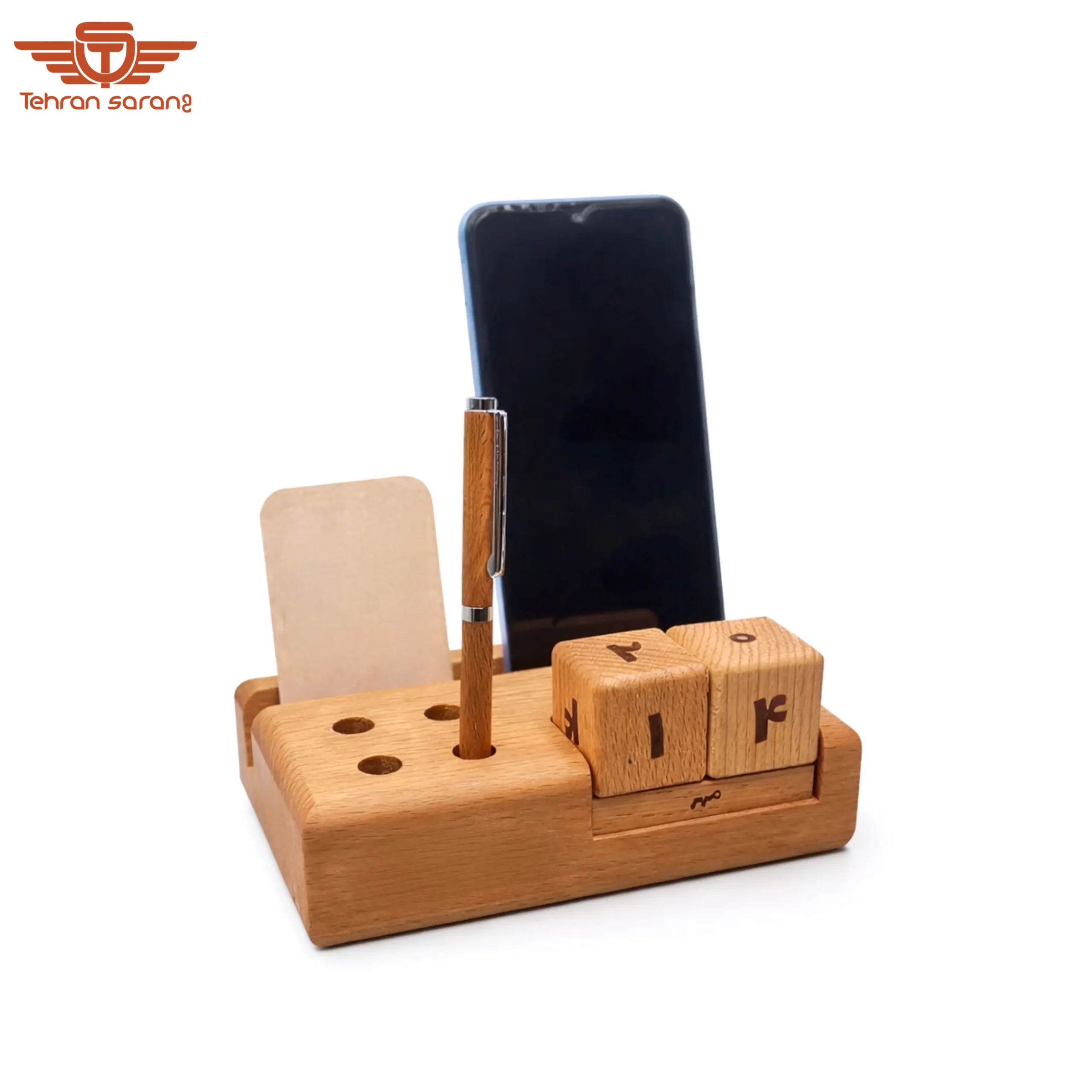این ست استند رومیزی چوبی ساختهشده از چوب راش، راهکاری هوشمندانه برای ایجاد نظم و زیبایی روی میز کار است. تقویم پایدار، استند موبایل و استند قلم در کنار هم، نیازهای روزمره را در قالب یک طراحی منسجم برطرف میکنند و بافت طبیعی چوب، حس آرامش و حرفهای بودن را به فضا میافزاید. بستهبندی کرافت، هویت طبیعی و مینیمال این محصول را تکمیل کرده و آن را به انتخابی خاص و ماندگار برای هدیه تبلیغاتی تبدیل میکند.